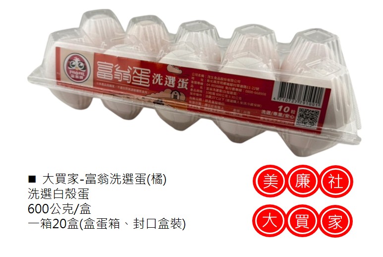 優質的白殼洗選蛋,經過清洗、殺菌、等多道檢測的白殼蛋品,讓人吃得更安心,也是 CP值最高的平價蛋品