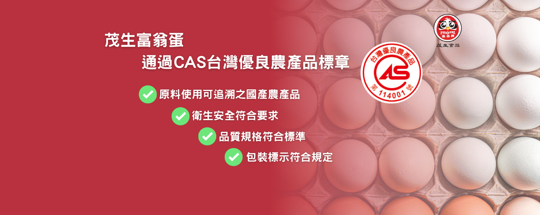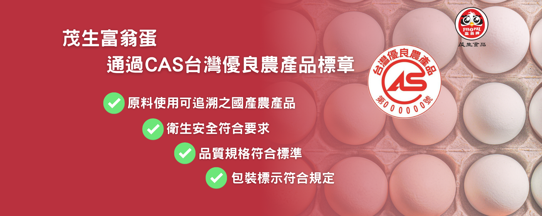 HACCP認證、ISO22000認證、優良農產品CAS認證。